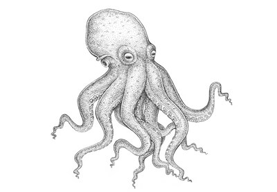 Тема этого урока - рисуем осьминога; в основе рисунке мы используем анатомию этого моллюска, кроме этого, мы добавим небольшую стилизацию к нашей работе.